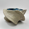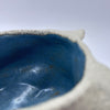 Small vase, made with a beige-gray clay, and a sea blue glaze on the inside, that evokes sand in appearance and texture. A reference to the sea, the waves, the sensations, and memories of my homeland.